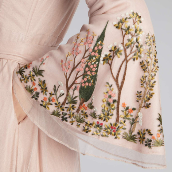 We are known for our beautiful embroideries and our artisans enjoy using age old techniques to create intricate and artful designs by hand. Inspiration is taken from history, art and nature which are then delicately woven together to create unique motifs which feature across our occasions range.